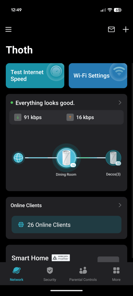 The deco app and web interface are tough but are fairly limited in terms of options. The app was able to detect many devices on my network, but it needs to share data with my third party. There is now an option to run a speed test on the router to see what your ISP offers. In the end, this three-pack has given me reliable and quick internet throughout my house and garden.