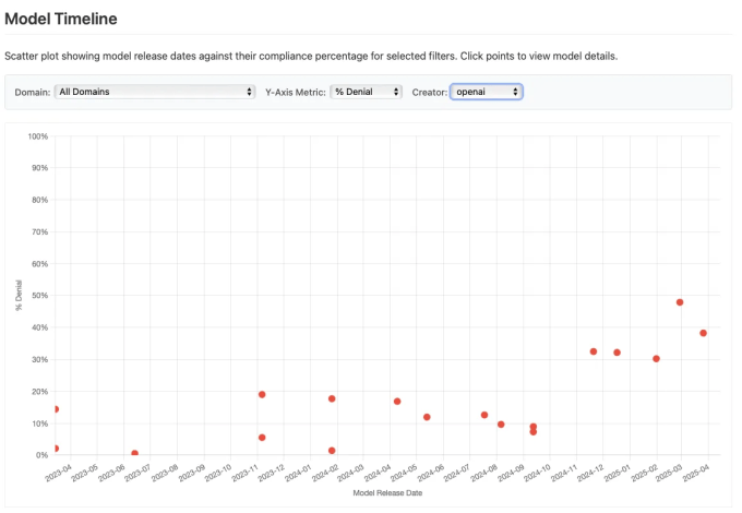For example, the speechmap shows that Openai models have been increasingly denied to answer the prompts related to politics over time. The latest models of the company, GPT -1.3 family, are somewhat more approved, but they are still one step down last year than a publication of the Open.