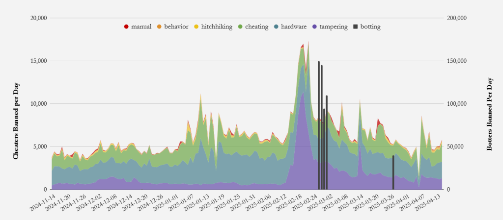 Thanks to Anti-Chit team led by Vanguard and Coskinus, riots banned thousands of fraudsters Heroism Every day according to a chart shared with TechCrunch.
